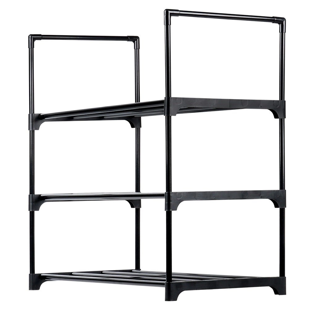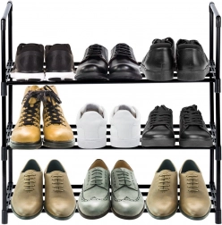 Păstrați ordinea în încălțăminte cu acest dulap elegant și funcțional, care oferă trei niveluri spațioase pentru perechile de zi cu zi și încălțămintea de sezon. Metalul vopsit în câmp electrostatic în culoare negru conferă un aspect modern și rezistență la zgârieturi, în timp ce lamelele deschise susțin circulația aerului și uscarea rapidă.