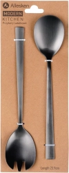 Set lingură + furcă de servire (spork) pentru prinderea sigură a ingredientelor. Pereche perfectă pentru eficiență la masă și în bucătărie.