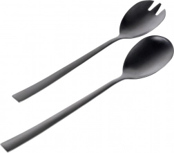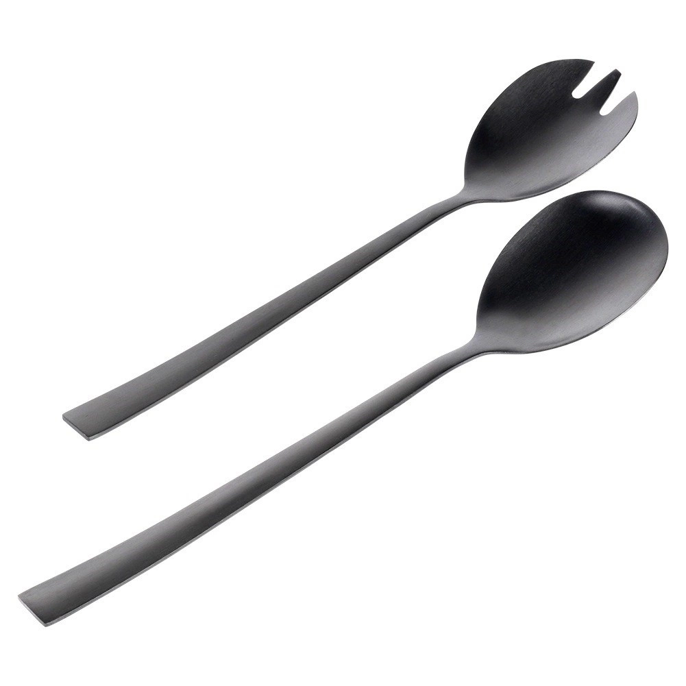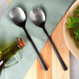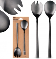 Setul de două linguri de servire pentru salată este fabricat din oțel inoxidabil rezistent, de culoare neagră, cu un subtil efect satinat. Oferă un echilibru perfect între aspectul modern și utilitatea practică – ideal pentru boluri adânci și boluri de salată.