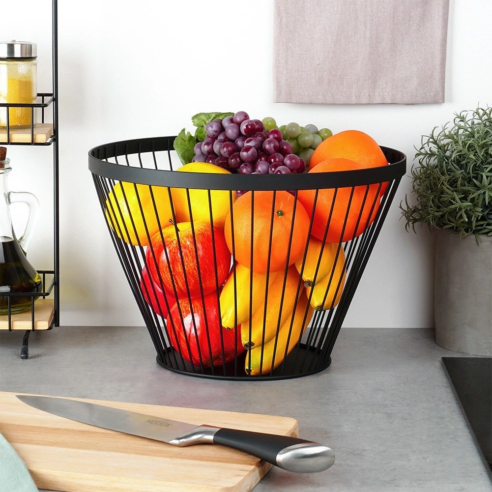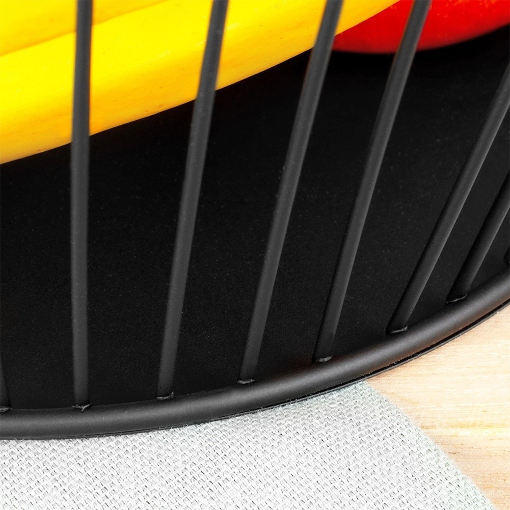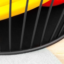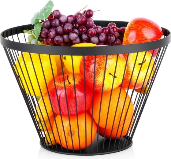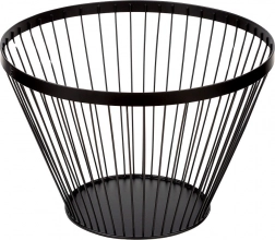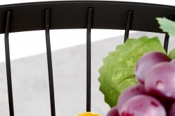 Coșul metalic pentru fructe Misty este alegerea ideală pentru orice bucătărie și sufragerie. Este realizat din metal de calitate, cu suprafață vopsită în câmp electrostatic negru, rezistentă și ușor de întreținut. Pereții înalți și evazați găzduiesc o rezervă bogată de fructe sau legume, iar datorită formei aerisite din sârmă conținutul rămâne proaspăt mai mult timp.