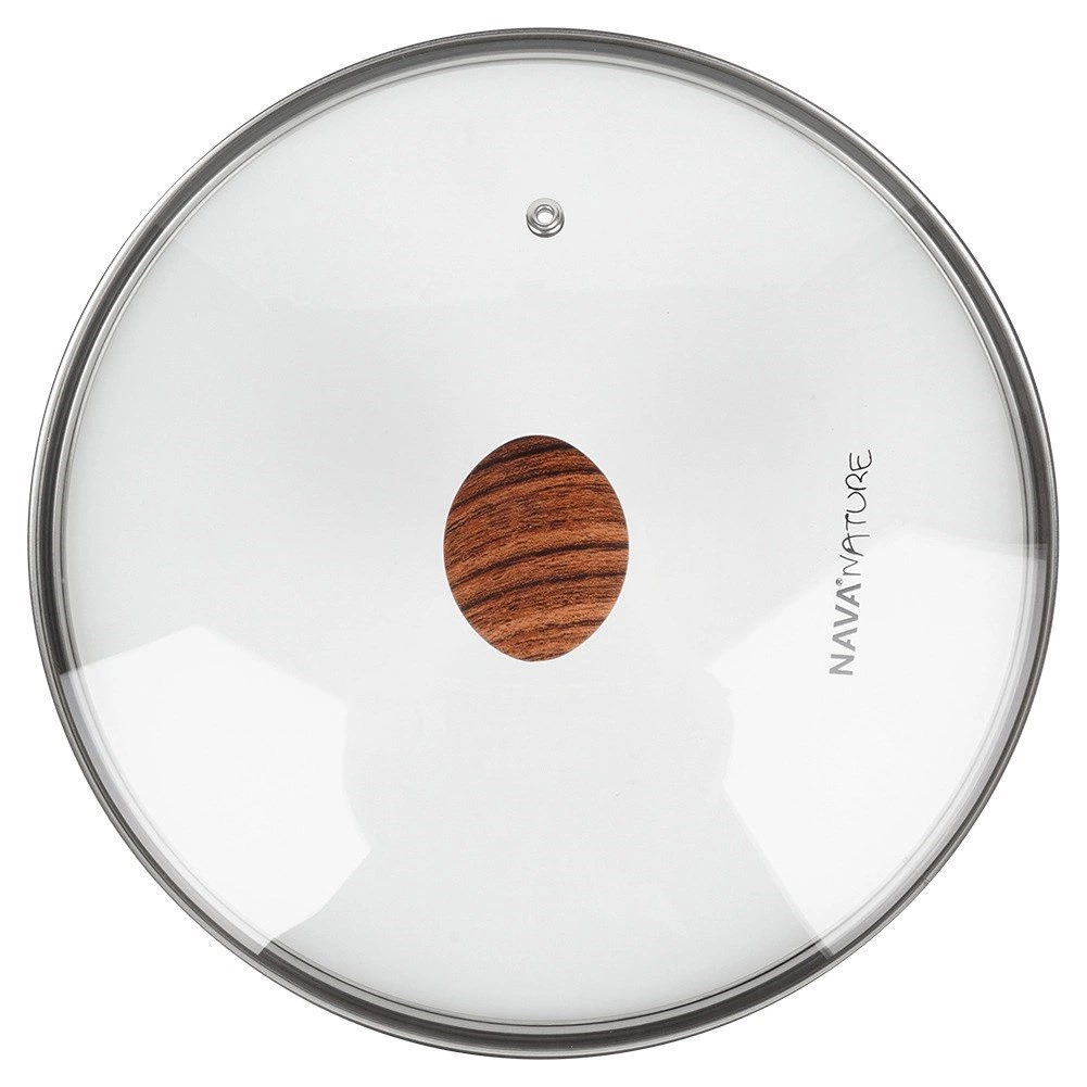 Capacul din sticlă NATURE 26 cm este un accesoriu practic pentru oale, tigăi și crăticioare cu același diametru. Sticla termorezistentă durabilă, cu margine din inox, se remarcă prin durată de viață îndelungată și aspect elegant, în timp ce mânerul ergonomic cu decor de lemn este plăcut la atingere și oferă o prindere bună.