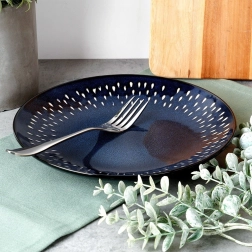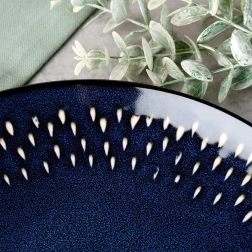Nuanța albastru închis, cu puncte decorative deschise de-a lungul marginii, oferă mesei un aspect modern și elegant. Se combină ușor cu alte piese ceramice.