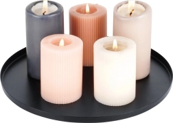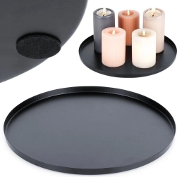Această tavă metalică de calitate, în finisaj negru mat, este perfectă pentru aranjarea lumânărilor, decorațiunilor sau bijuteriilor. Diametrul de 30 cm și marginea ușor înălțată asigură stabilitate și protejează suprafețele de ceară și impurități. Datorită aspectului atemporal, se combină ușor cu diverse stiluri de interior.