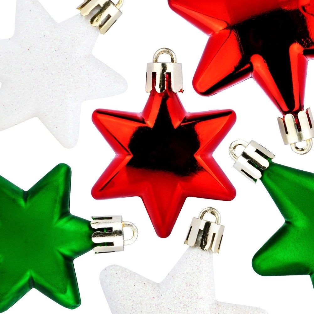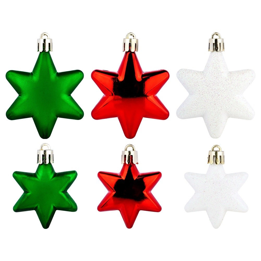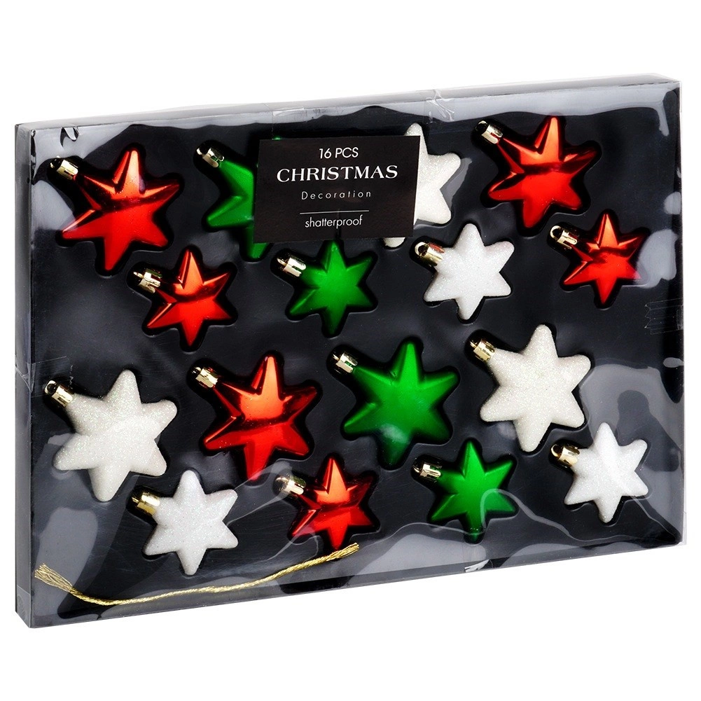 Îmbogățiți decorul sărbătorilor cu steluțe elegante care seamănă fidel cu globurile din sticlă, dar datorită plasticului rezistent sunt sigure și indestructibile. Setul de 16 piese în combinația armonioasă roșu, verde și alb (inclusiv variații sclipitoare) aduce interiorului stil și căldura Crăciunului.