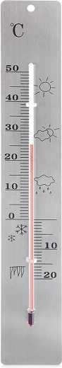Termometrul este umplut cu lichid pe bază de naftă și nu conține mercur, fiind sigur pentru gospodărie. Datorită ochiului pentru agățare, îl puteți monta ușor pe perete, pe balcon, terasă, în grădină sau în interiorul locuinței.