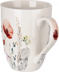 Această cană stilată din porțelan de calitate, cu decor delicat de flori de câmp, aduce o notă de eleganță mesei tale. Datorită volumului de 360 ml, este perfectă pentru băuturile calde preferate, iar toarta confortabilă asigură o prindere excelentă. Designul atemporal se combină ușor cu orice veselă.