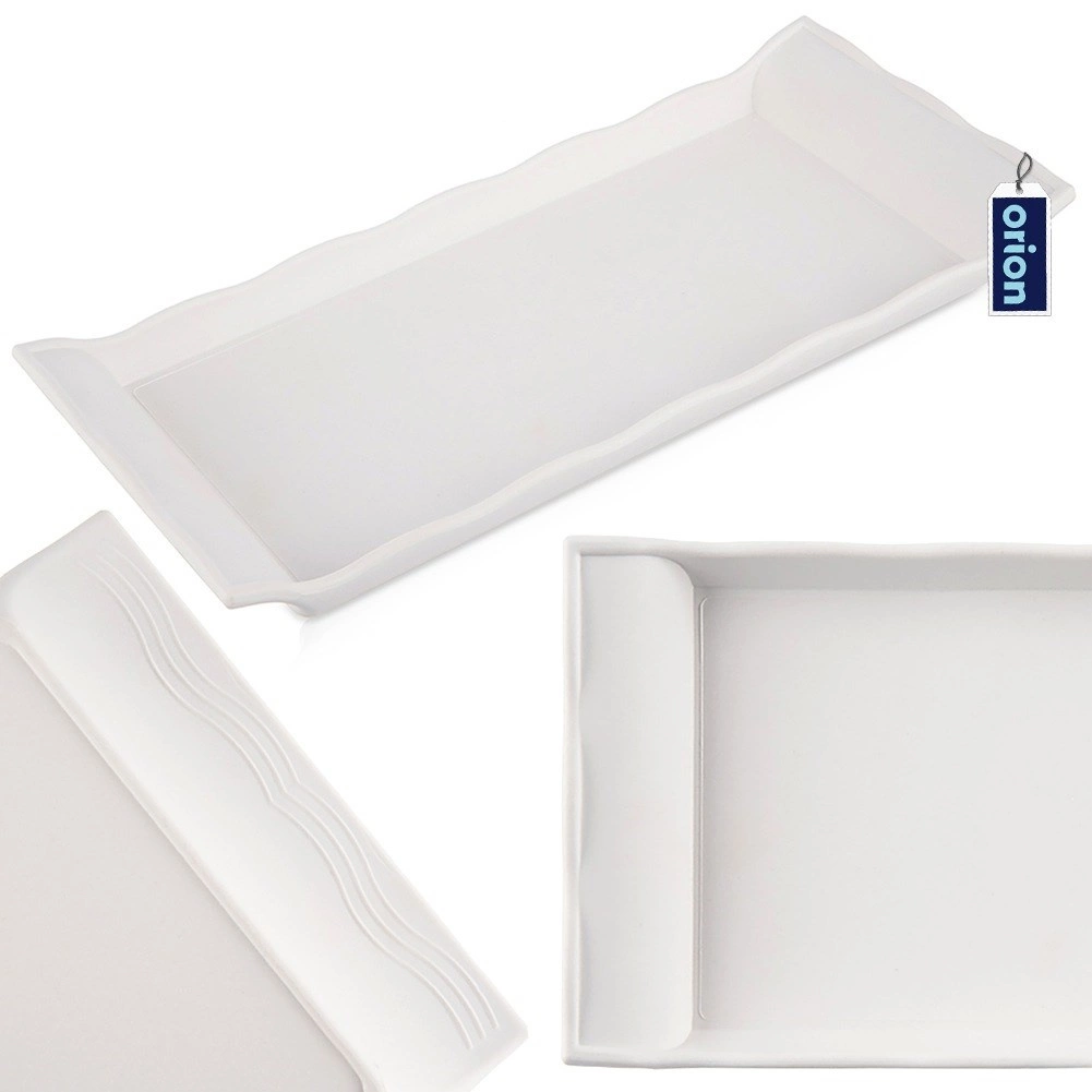 Tavă dreptunghiulară practică, cu dimensiunile 29,5 × 13 × 3 cm, pentru servirea zilnică a băuturilor, deserturilor și gustărilor. Datorită suprafeței antiderapante stabile, rezistenței ridicate și curățării ușoare, este ideală pentru acasă și în gastronomie.