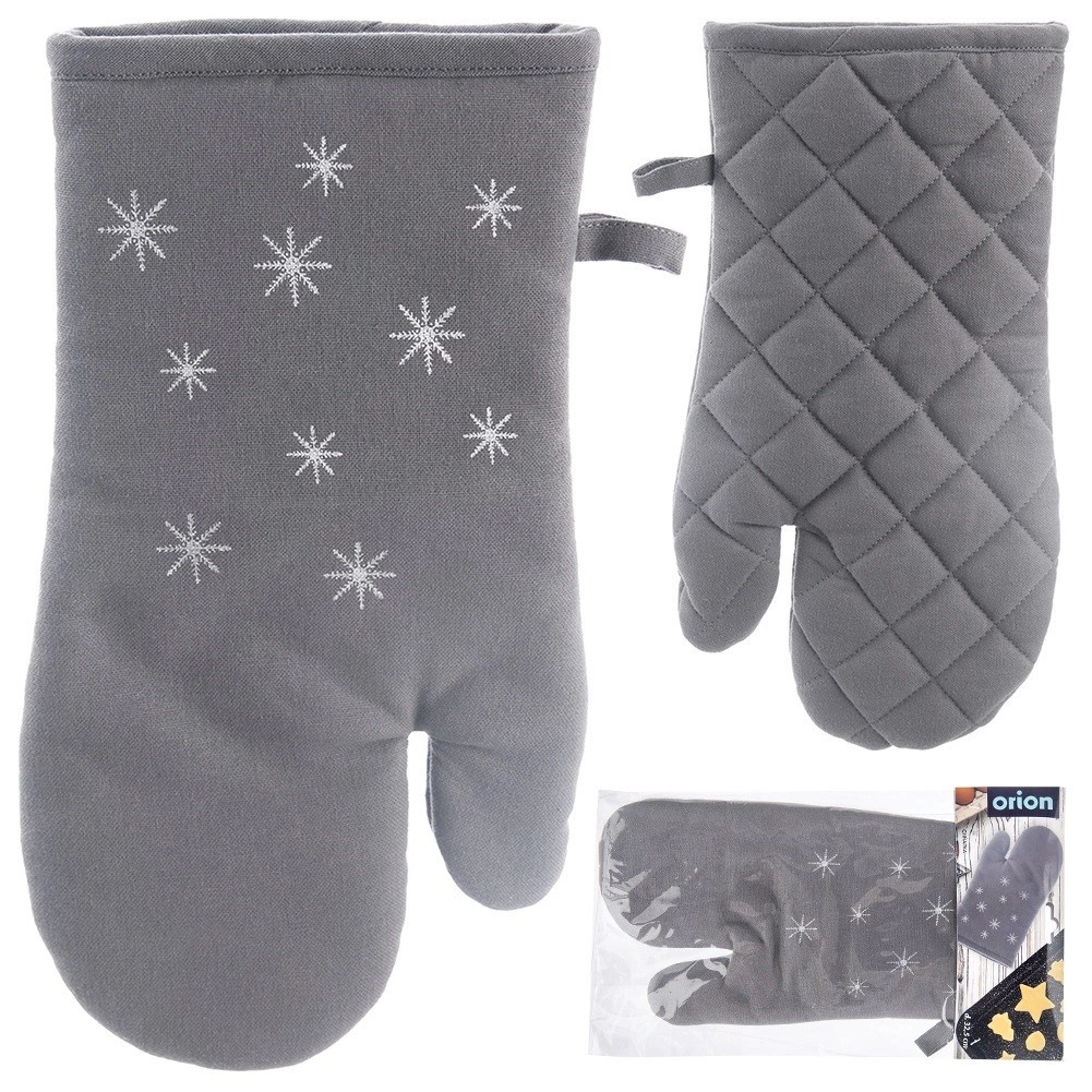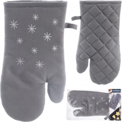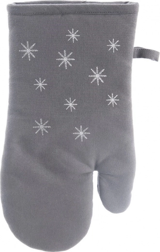 Această mănușă de bucătărie din bumbac, în culoare gri cu un motiv discret de fulgi de zăpadă, este excelentă pentru utilizare zilnică. Oferă protecție eficientă împotriva temperaturilor ridicate la manipularea vaselor și tăvilor fierbinți. Dimensiunea universală 17 × 32,5 cm asigură purtare confortabilă pe ambele mâini.