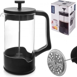 Acest french press din sticlă combină simplitatea preparării cu materiale de calitate. Paharul din borosilicat rezistă la temperaturi ridicate, în timp ce pistonul din inox și sita fină separă zațul sau frunzele și asigură o băutură limpede, aromată. Capacul și rama din plastic negru mat oferă stabilitate și stil.