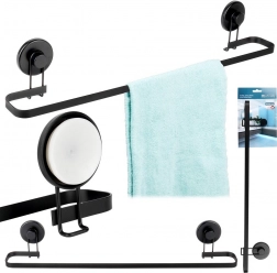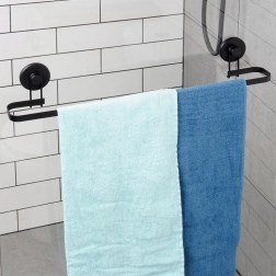 Acest suport minimalist pentru prosoape, în culoare negru mat, îmbină designul curat cu funcționalitatea de zi cu zi. Datorită celor două ventuze mari, îl fixați ușor și rapid pe suprafețe netede, precum sticla sau faianța, fără a fi nevoie de găurire – pereții rămân neafectați.