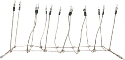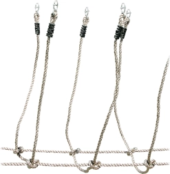 Inelele metalice de la capetele frânghiei permit o fixare ușoară și variabilă între două puncte fixe.