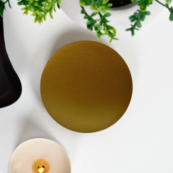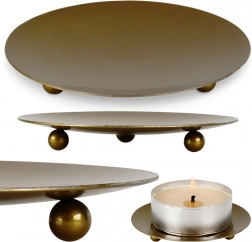 Descoperiți un accesoriu stilat și funcțional pentru casa dvs. – suportul metalic pentru lumânări în auriu mat. Farfurioara joasă pe trei piciorușe sferice asigură o stabilitate excelentă și o ușoară ridicare deasupra suprafeței, ceea ce ajută la disiparea căldurii și protejarea mobilierului de ceară și temperatură. Aspectul minimalist se potrivește ușor cu orice stil de interior.