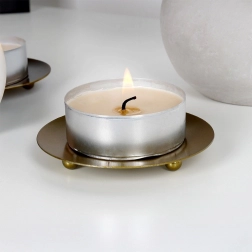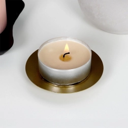 Datorită execuției din metal de calitate, suportul este durabil și este perfect pentru lumânări tip pastilă și mai mici. La fel de bine poate fi folosit ca tăviță decorativă pentru bijuterii sau mici decorațiuni. Un detaliu discret cu efect vizibil, care aduce în spațiu eleganță și o atmosferă primitoare.