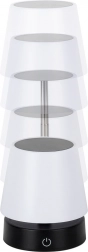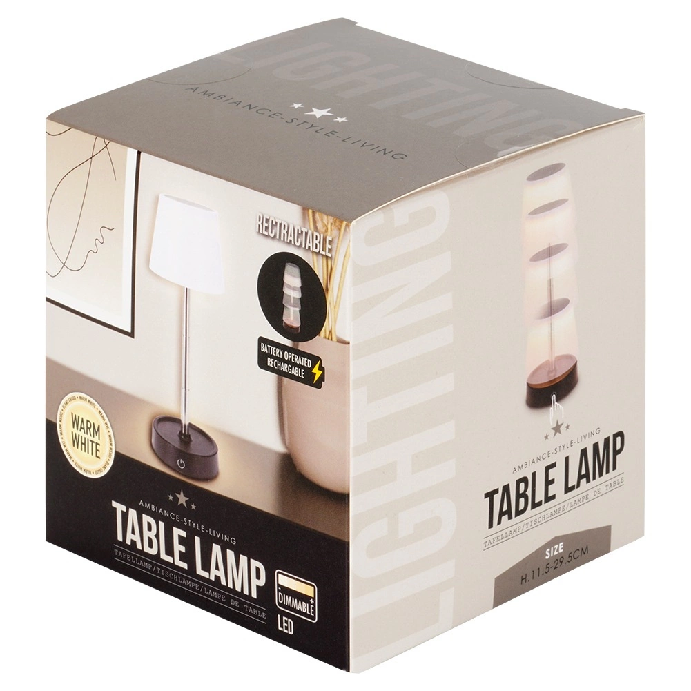 Această lampă LED decorativă de birou se remarcă prin designul curat și utilizarea universală. Datorită înălțimii reglabile 11–29,5 cm și dimensiunilor compacte, se adaptează ușor zonelor de lucru și relaxare. Lumina albă caldă creează o atmosferă plăcută în dormitor, living și sufragerie.