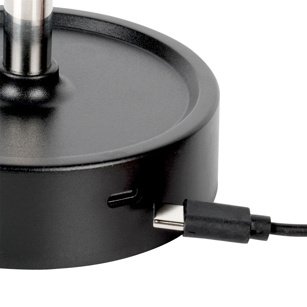 Controlul tactil și dimmingul lin permit setarea exactă a luminii de care aveți nevoie. Bateria integrată cu încărcare USB‑C asigură utilizare wireless comodă, fără cabluri deranjante. Construcția metalică stabilă, baza neagră cu paduri din fetru și abajurul alb cu diametru de 10,5 cm accentuează aspectul modern al lămpii.