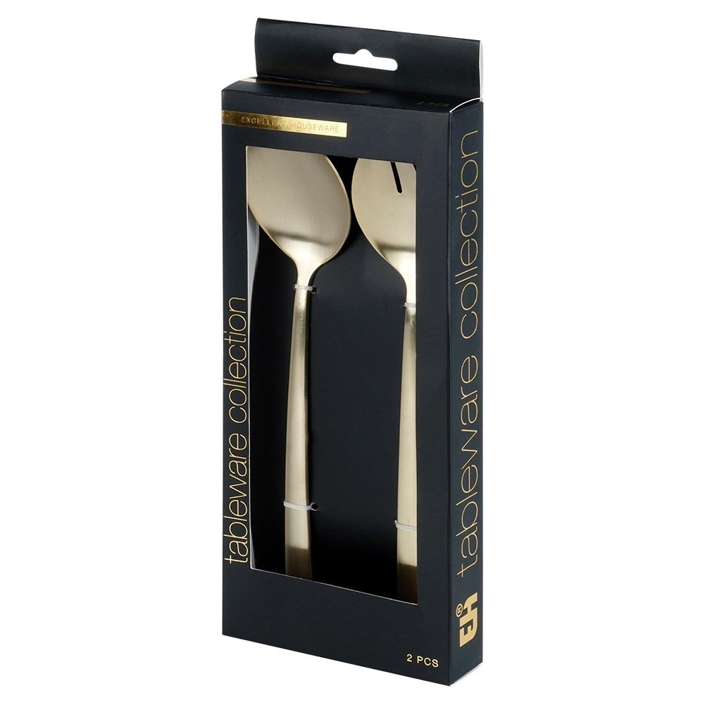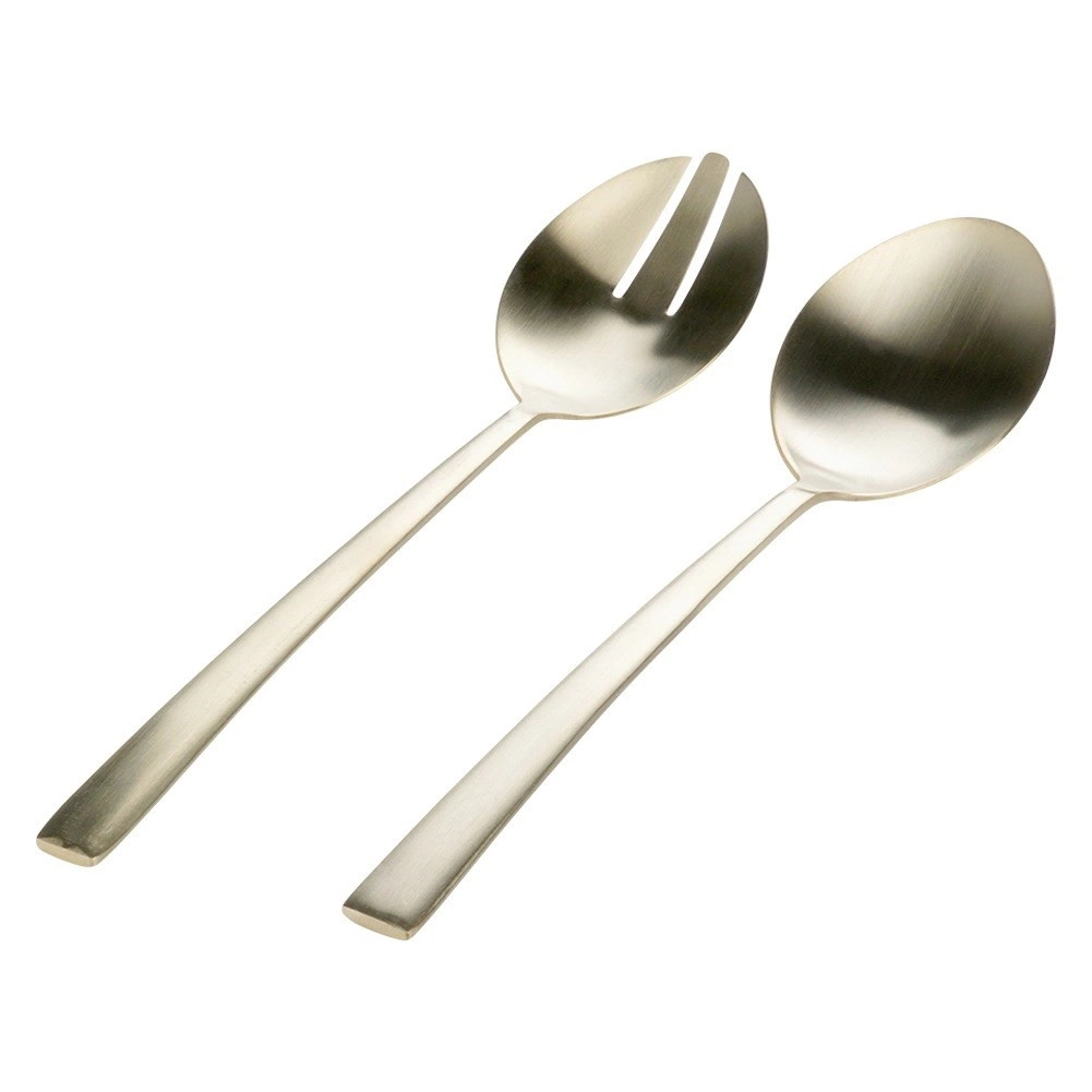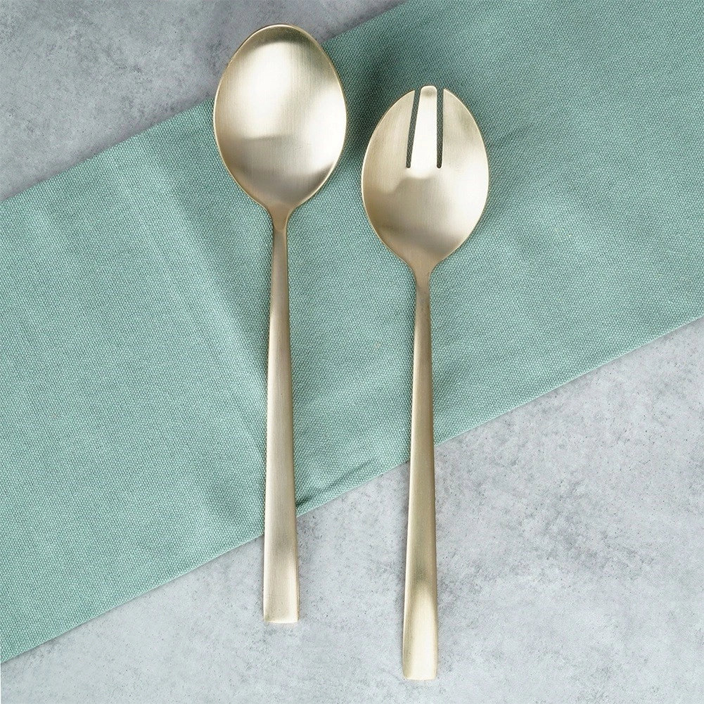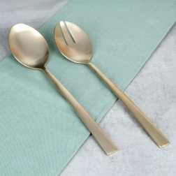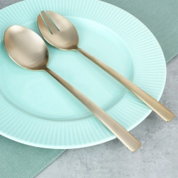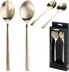 Setul de 2 linguri de salată stilate, în populara execuție aurie, aduce o notă de eleganță mesei tale. Finisajul satinat șlefuit îmbină un luciu delicat cu un aspect mat discret, creând un stil modern potrivit pentru orice interior.