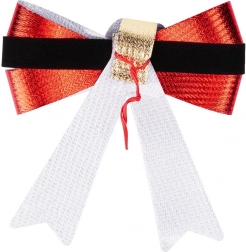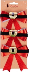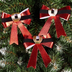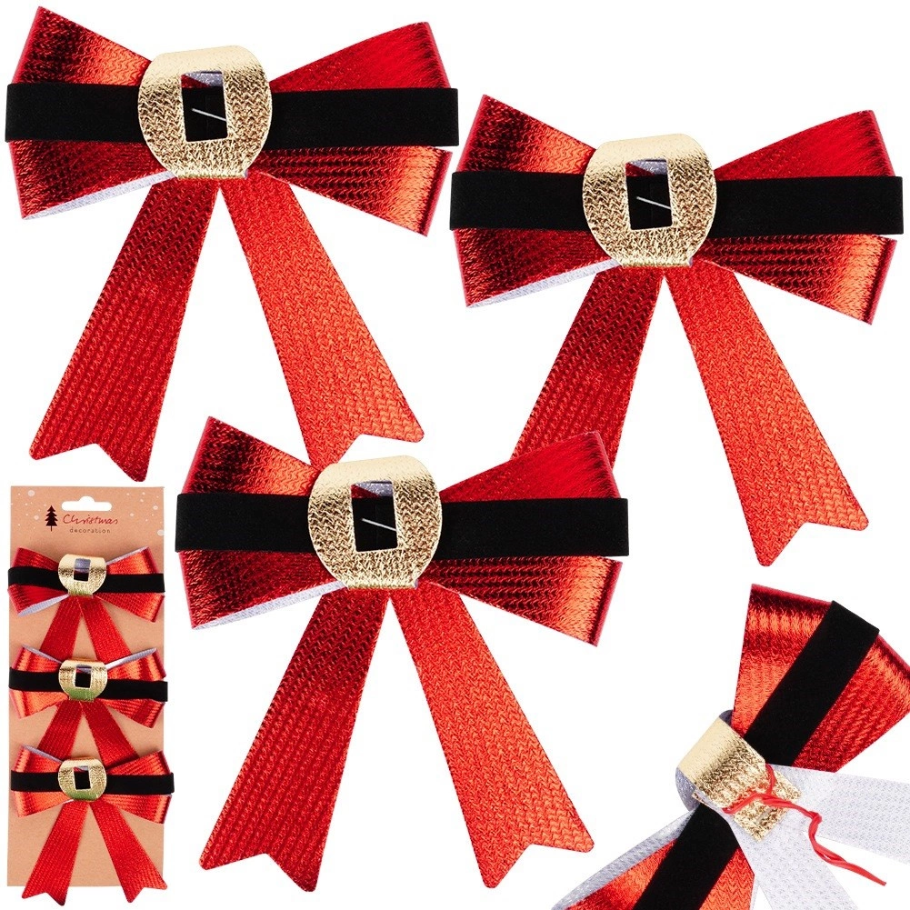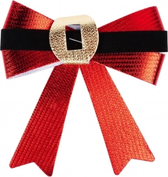 Adu farmecul Crăciunului în casă cu acest set de 3 fundițe decorative. Strălucirea metalică roșie, banda neagră catifelată în contrast și accentul auriu ce amintește de o cataramă oferă eleganță și se potrivesc perfect atât decorațiunilor clasice, cât și celor moderne.