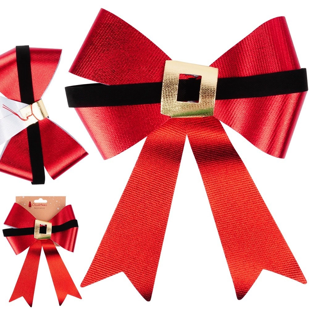 Dați un accent remarcabil sărbătorilor cu această fundă spectaculoasă în roșu elegant. Cureaua de catifea neagră cu cataramă aurie creează un aspect festiv iconic și pune în valoare orice brad, coroniță sau ușă de la intrare. Datorită greutății reduse și firului inclus, funda se fixează ușor și rapid aproape oriunde.