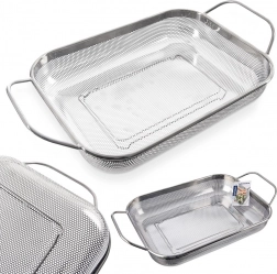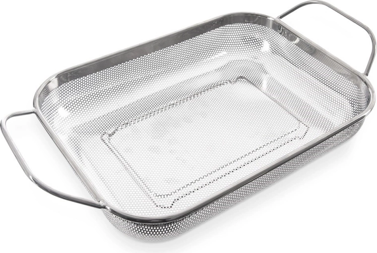 Coșul servește ca sită deasupra chiuvetei și ca coș pentru grătar. Perforația permite trecerea căldurii și fumului, iar alimentele nu cad prin ochiuri.