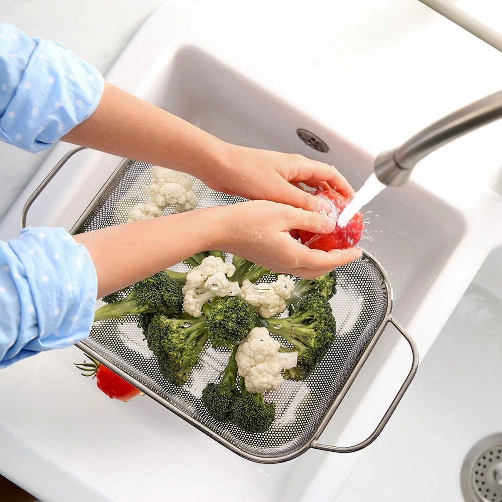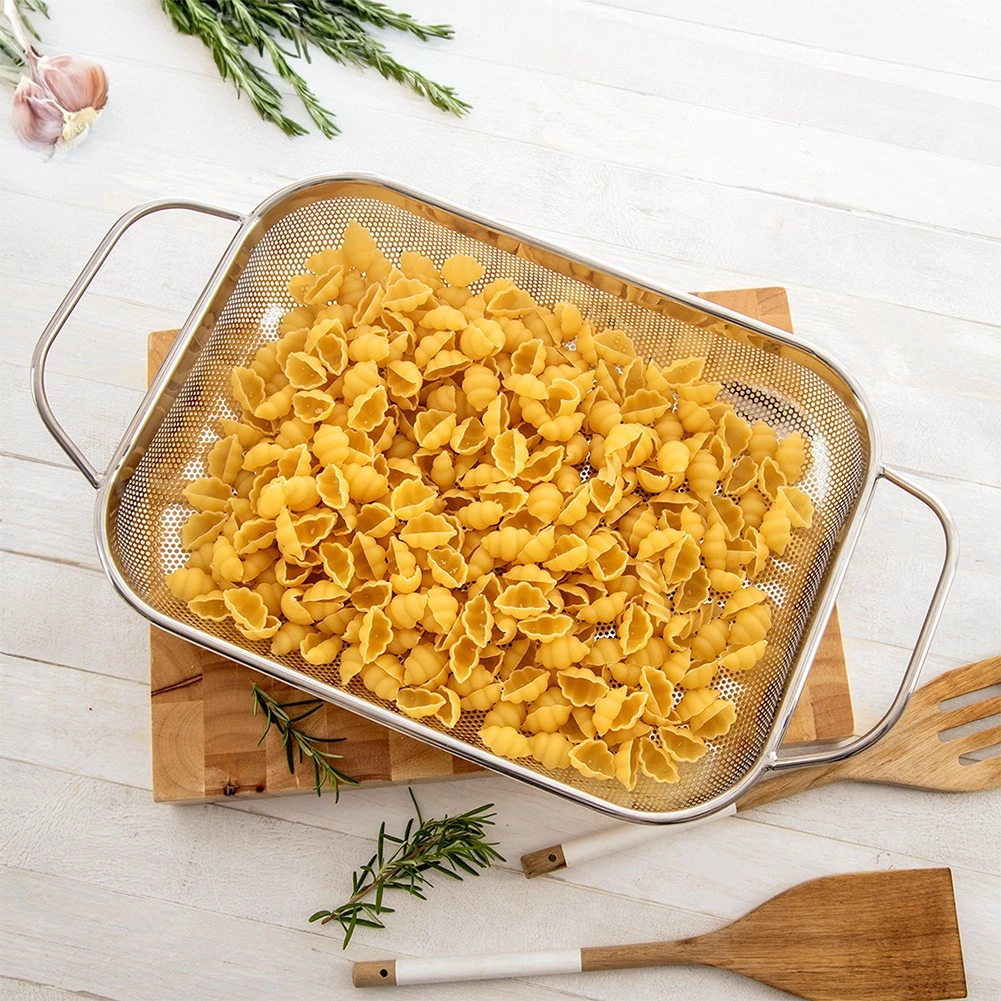 Plasa deasă evacuează eficient apa și reține chiar și bucățile mici de alimente – ideală pentru legume, paste sau orez.