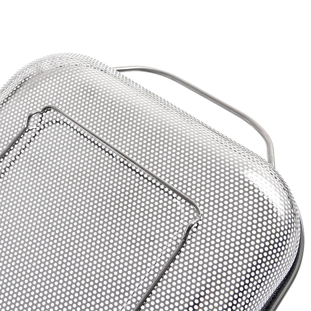 Datorită oțelului inoxidabil rezistent, coșul este potrivit pentru alimente fierbinți, suportă temperaturi ridicate și poate fi spălat fără griji în mașina de spălat vase. În bucătărie îl folosiți pentru clătire, strecurare și scurgere, iar pe grătar pentru o coacere uniformă a bucăților mai mici fără a cădea prin grătar.