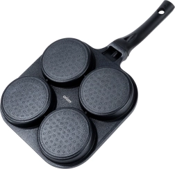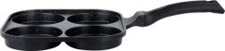Tigaia pătrată de 22 × 22 cm cu patru camere separate asigură dimensiuni uniforme ale porțiilor și un aspect impecabil al micului dejun. Corpul din aluminiu cu strat antiaderent din granit se încălzește rapid și distribuie excelent căldura, astfel încât prăjești rapid, economic și fără a se arde. Mânerul ergonomic, antiderapant, cu orificiu pentru agățare asigură utilizare comodă și sigură.
