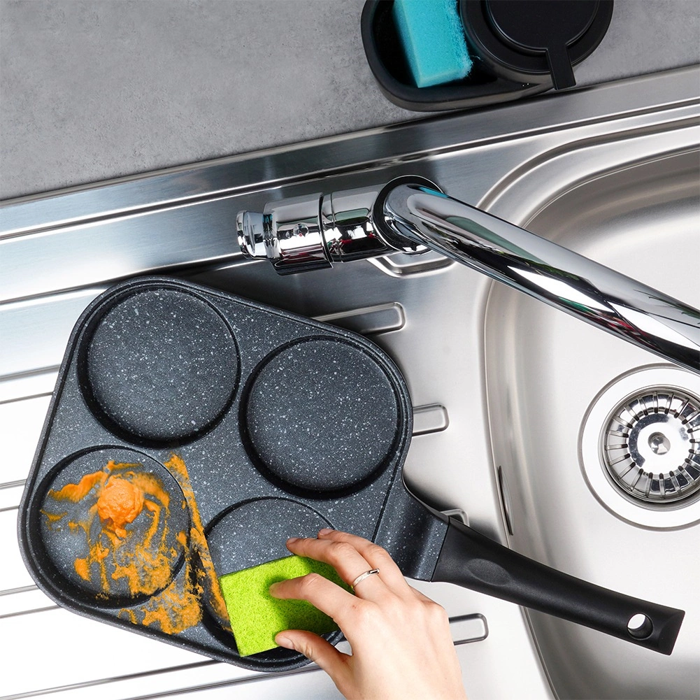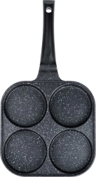 Tigaie practică din granit cu patru forme rotunde cu diametrul de 10 cm pentru ouă ochi perfecte, clătite americane și mini clătite. Datorită stratului antiaderent PFLUON GRANIT, gătești cu minimum de grăsime, rapid și uniform. Potrivită pentru gaz, electric, ceramic, halogen și inducție, se curăță ușor și poate fi spălată în mașina de spălat vase.