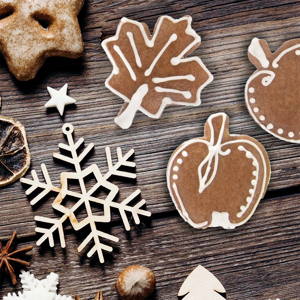 Creați motive de toamnă și de Crăciun pentru prăjituri și deserturi – efectul iese în evidență cu glazură albă.