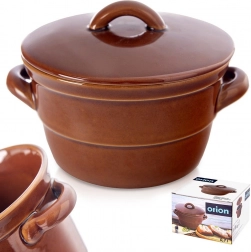 Vasul ceramic universal cu capac, în tradiționala culoare maro, este un ajutor excelent pentru bucătăria de zi cu zi. Ceramica opacă, glazurată, ajută la menținerea unei temperaturi stabile și creează condiții ideale pentru fermentare și maturare, datorită cărora alimentele își păstrează gustul și calitatea.