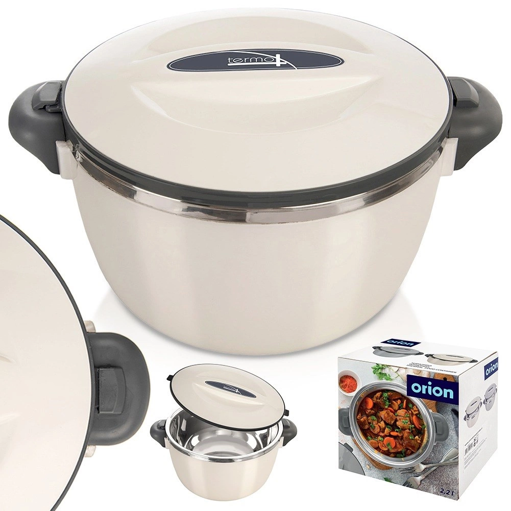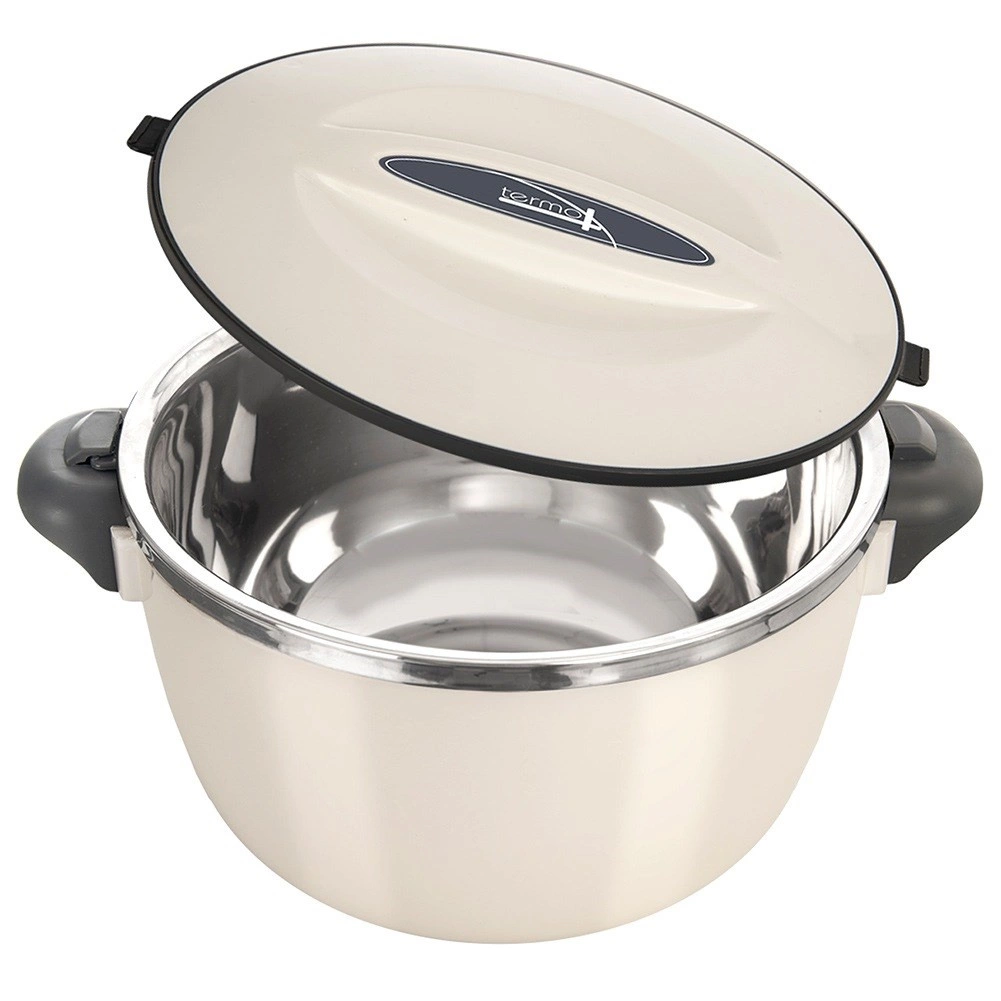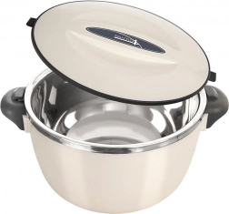 Vasul termic din gama Termo este un ajutor excelent pentru servirea zilnică și transportul mâncărurilor. Inserția interioară din oțel inoxidabil ajută la menținerea temperaturii stabile, în timp ce învelișul ușor și rezistent din plastic asigură o prindere sigură și o utilizare plăcută. Datorită capacului rotativ, închiderea este rapidă și simplă. Vasul nu este 100% etanș – pentru transport, țineți-l în poziție verticală.