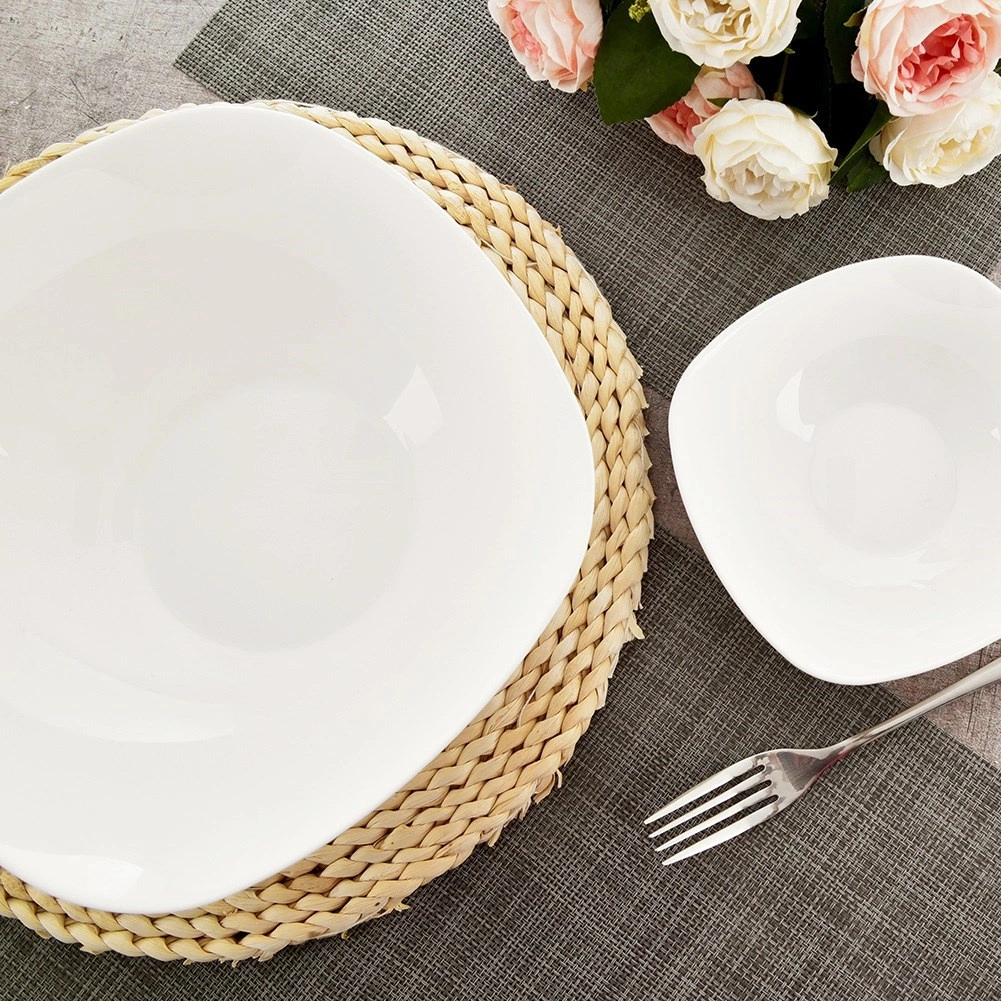 - Design rafinat – forma pătrată cu margini rotunjite completează frumos serviciul de masă.