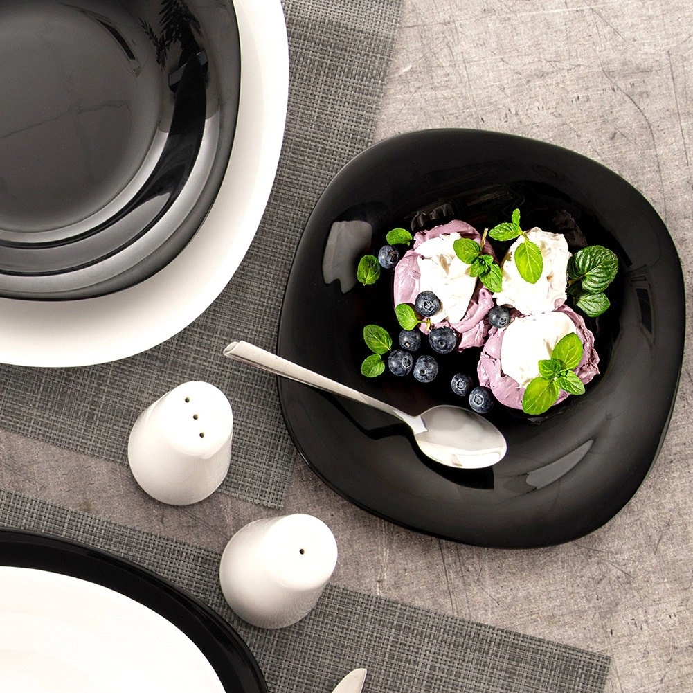 Creează o masă aranjată cu stil cu farfuria de desert LUNA neagră. Sticla opal de calitate are aspect de porțelan, este rezistentă la utilizarea zilnică și ușor de întreținut. Designul minimalist, dar expresiv, evidențiază servirea torturilor, plăcintelor, deserturilor și gustărilor fine.