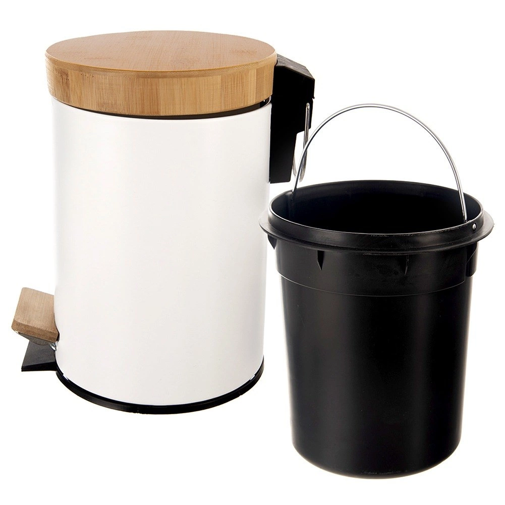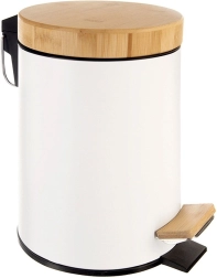 Coș de gunoi compact cu capacitate de 3 l, într-o variantă elegantă albă, cu capac și pedală din bambus, ideal pentru baie, birou sau dormitor. Deschidere silențioasă și igienică cu pedală, insert detașabil pentru golire ușoară și design modern minimalist potrivit oricărui spațiu.