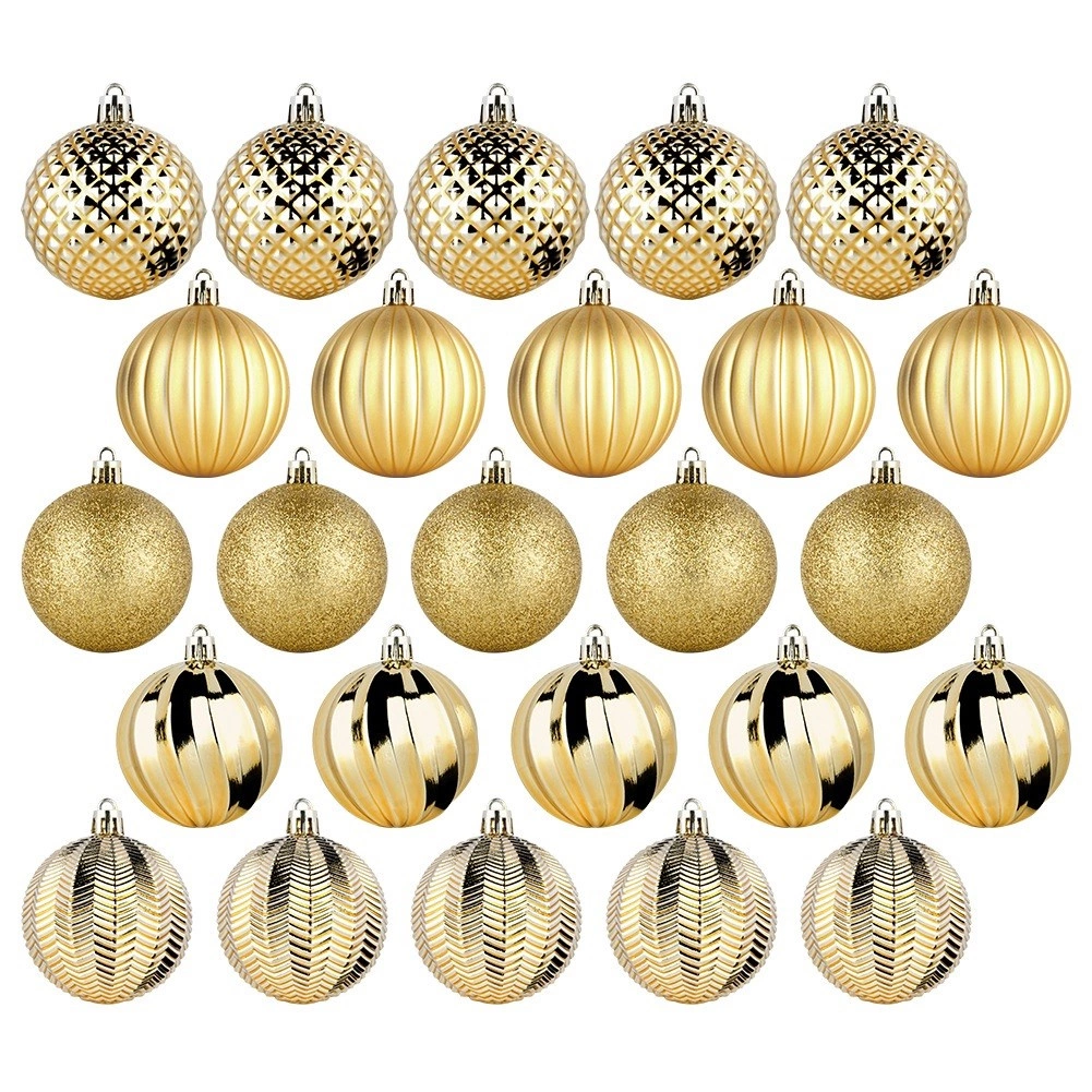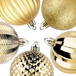 În pachet găsiți un mix de globuri lucioase, mate, cu sclipici și reliefate pentru varietate vizuală și un strălucit impresionant. Datorită culorii aurii uniforme, le combinați ușor cu alte ornamente și luminițe.