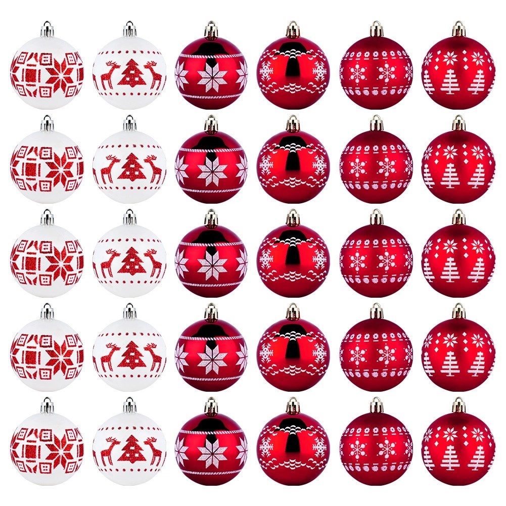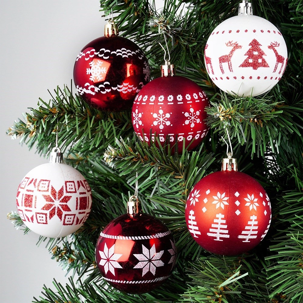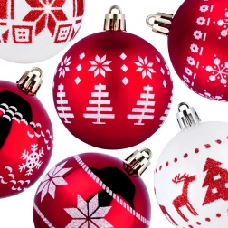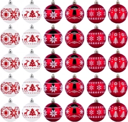 Setul elegant de 30 de ornamente din plastic oferă un mix echilibrat de globuri roșii și albe, cu finisaj lucios și mat. Datorită materialului indestructibil, sunt sigure, ușoare și ușor de agățat, astfel încât poți decora nu doar bradul de Crăciun, ci și coroanele, ghirlandele sau aranjamentele festive din toată casa.