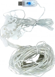 Cortina luminoasă decorativă transformă orice fereastră sau perete într-un fundal luminos spectaculos. Zece fire verticale cu diode LED creează efectul de „cascadă”, iar culoarea alb rece conferă spațiului un aer curat și festiv. Controlul este simplu – prin alimentare USB și telecomanda inclusă.