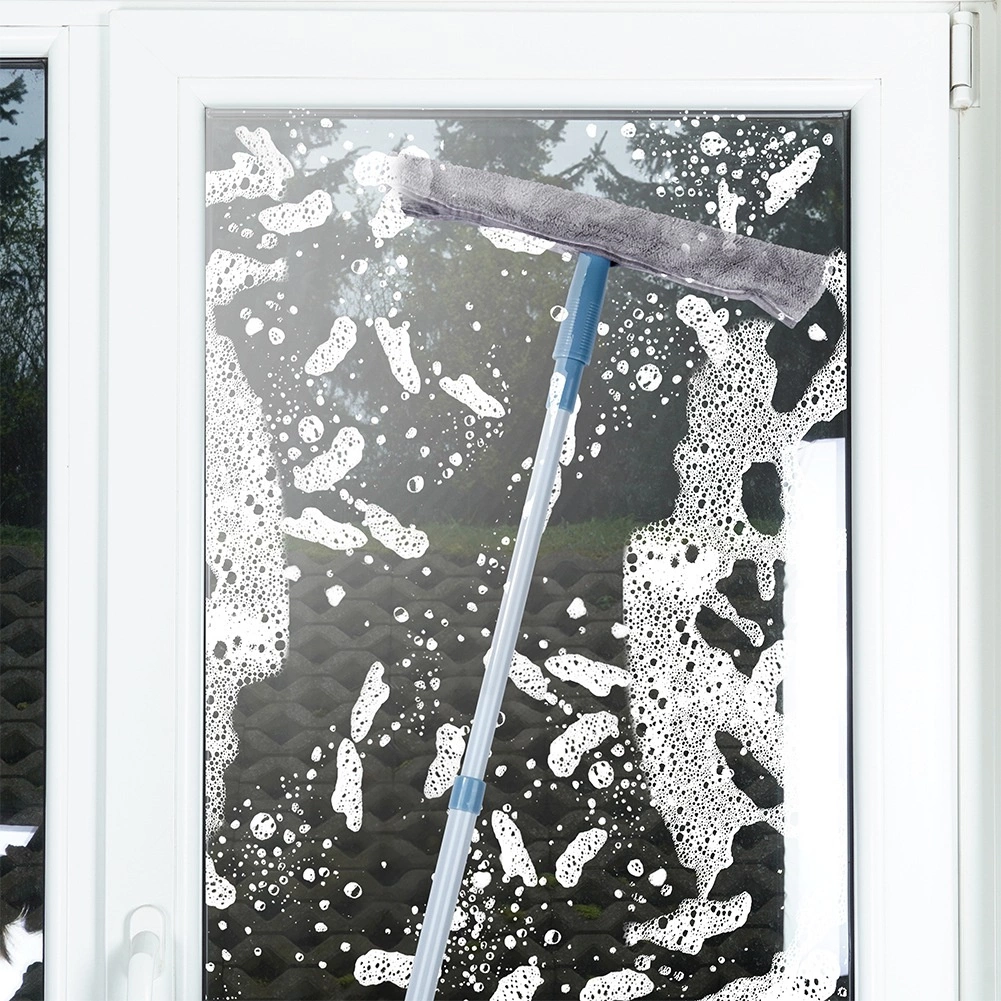 Reglarea ușoară a lungimii permite spălarea ferestrelor aflate la înălțime fără scară – comod și în siguranță.