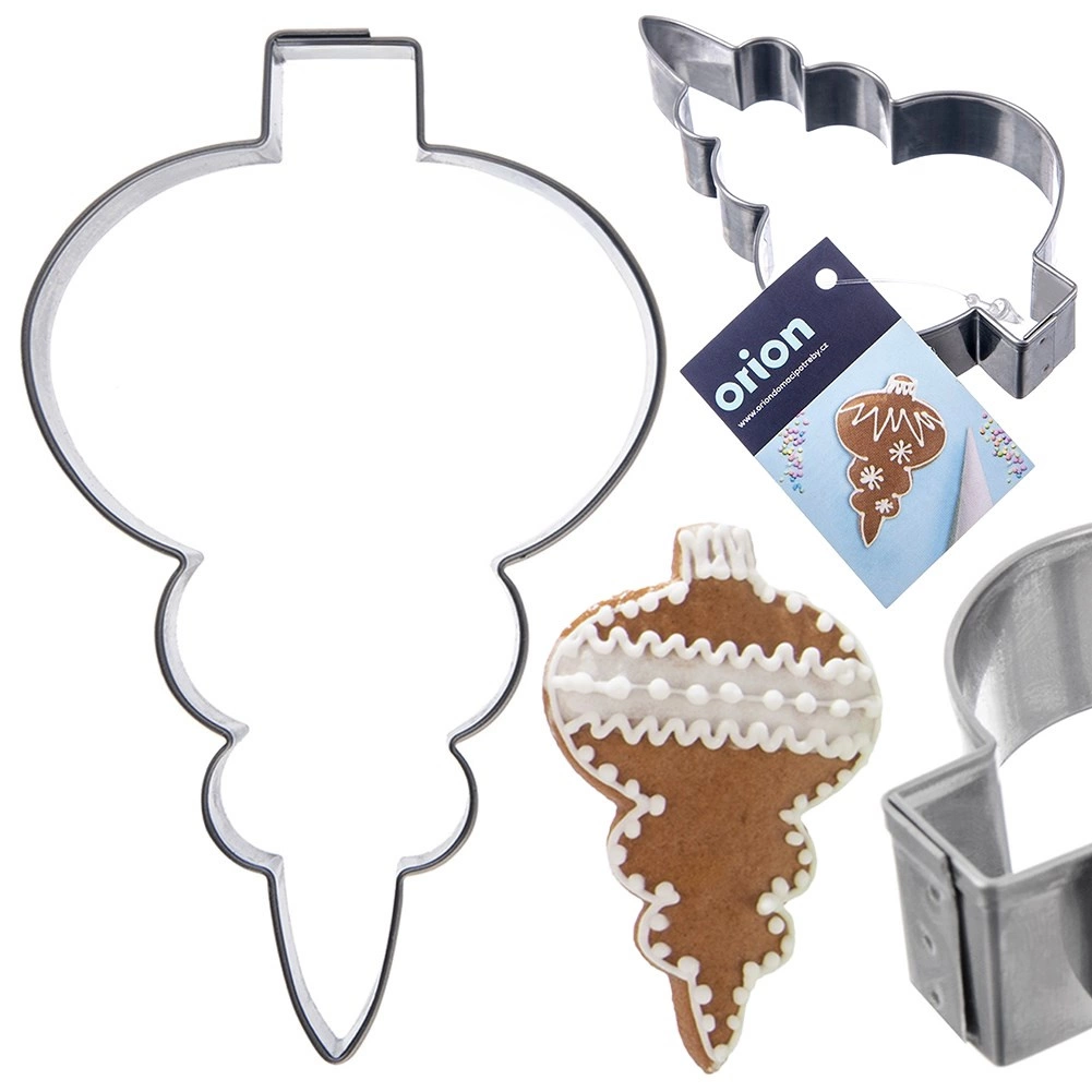 Forma stilată de tăiat din oțel inoxidabil te ajută să pregătești turtă dulce și biscuiți de Crăciun perfect conturați, cu motiv de ornament de Crăciun – vârf. Este durabilă, ușor de întreținut și, datorită marginilor de tăiere curate, creează forme ascuțite și uniforme fără fărâmițarea aluatului.