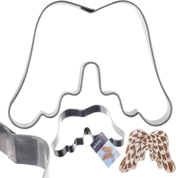 Creați turtă dulce și prăjituri perfecte în formă de aripi îngerești cu o formă decupatoare de calitate din oțel inoxidabil, de 11 × 8 cm. Este rezistentă, ușor de curățat și potrivită pentru mașina de spălat vase. Ideală pentru coptul de Crăciun, decorațiuni din fondant și creații creative cu produse de patiserie și fructe.