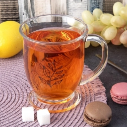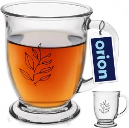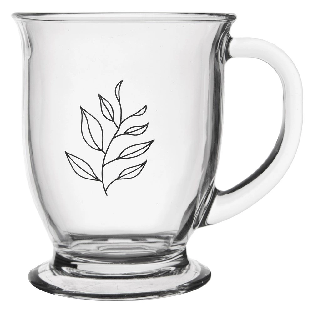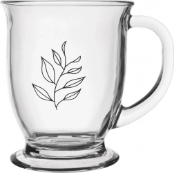 Cană mare din sticlă, cu volum de 450 ml, ideală pentru băuturile calde preferate. Datorită sticlei transparente și groase te bucuri de culoarea ceaiului sau cafelei, iar mânerul ergonomic asigură o prindere confortabilă. Designul clasic simplu cu motiv de frunză se potrivește perfect cu orice veselă de masă.