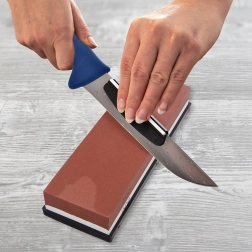 Baza din silicon anti-alunecare asigură sprijin ferm. Potrivit pentru cuțite de bucătărie, foarfece, dălți și unelte de grădină.