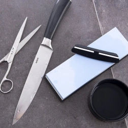 Partea grosieră #240 pentru refacerea rapidă a tăișului, partea fină #1200 pentru finisare și lustruire – combinația ideală pentru îngrijirea completă a cuțitelor.