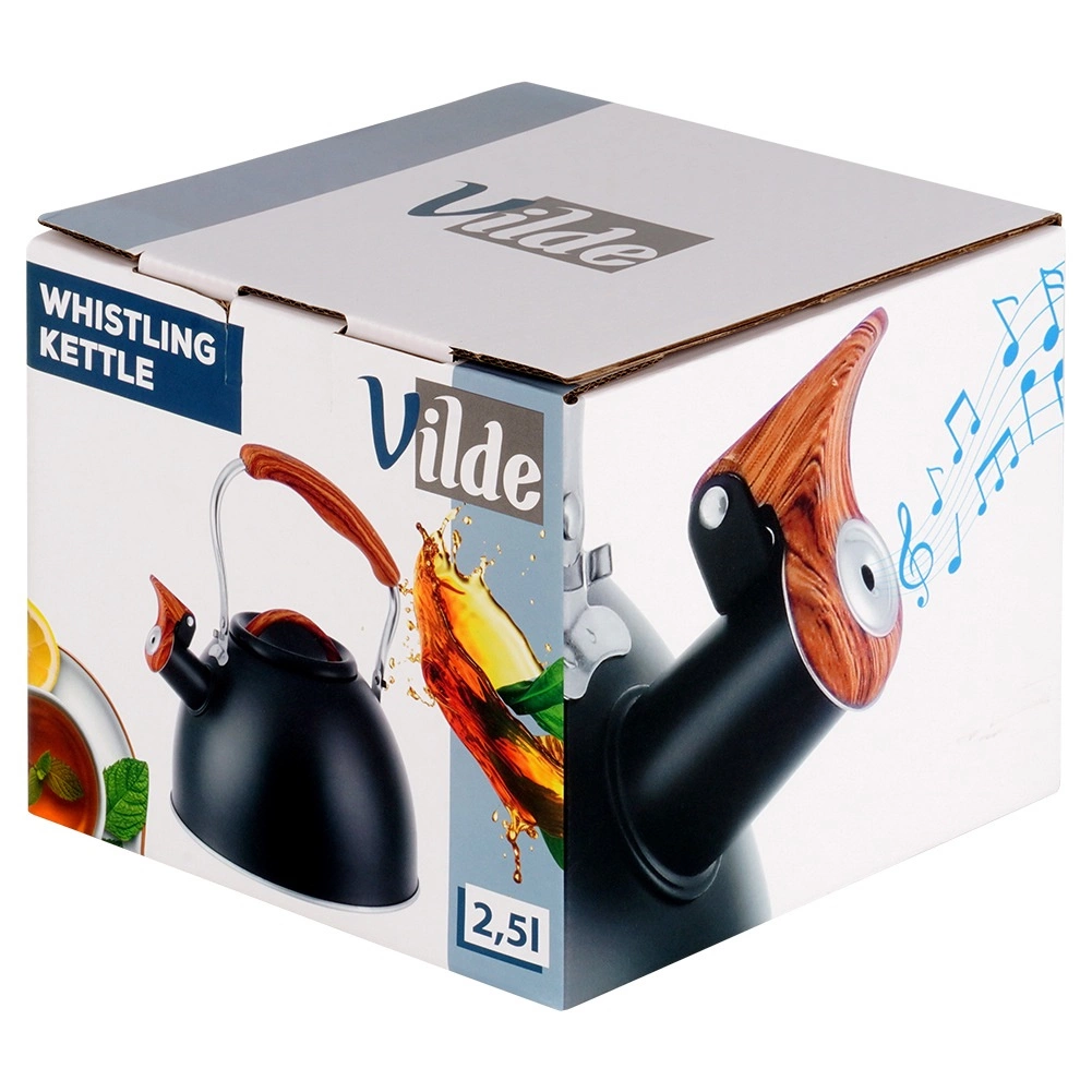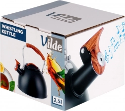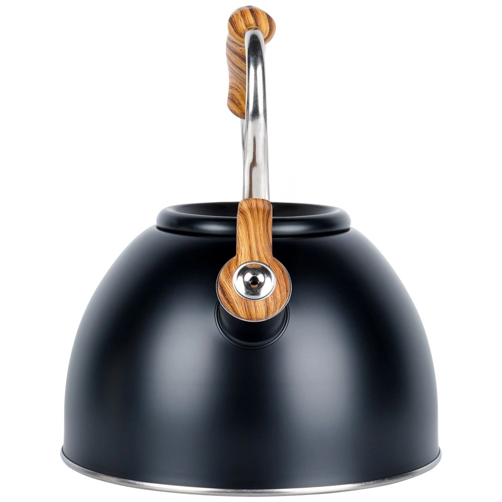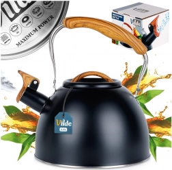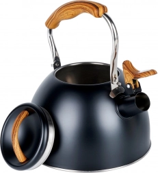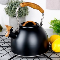 Ceainicul elegant negru mat din oțel inoxidabil asigură gustul curat al apei și o durată lungă de viață. Datorită fundului lat și stabil și transferului eficient de căldură, apa se încălzește rapid chiar și la putere redusă. Turnarea sigură și comodă este asigurată de fluierul rabatabil acționat prin pârghia de pe mâner.