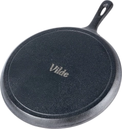 Fonta masivă acumulează excelent și distribuie uniform căldura pe toată suprafața. Rezultatul sunt clătite, tortilla și turte coapte uniform, fără zone reci.