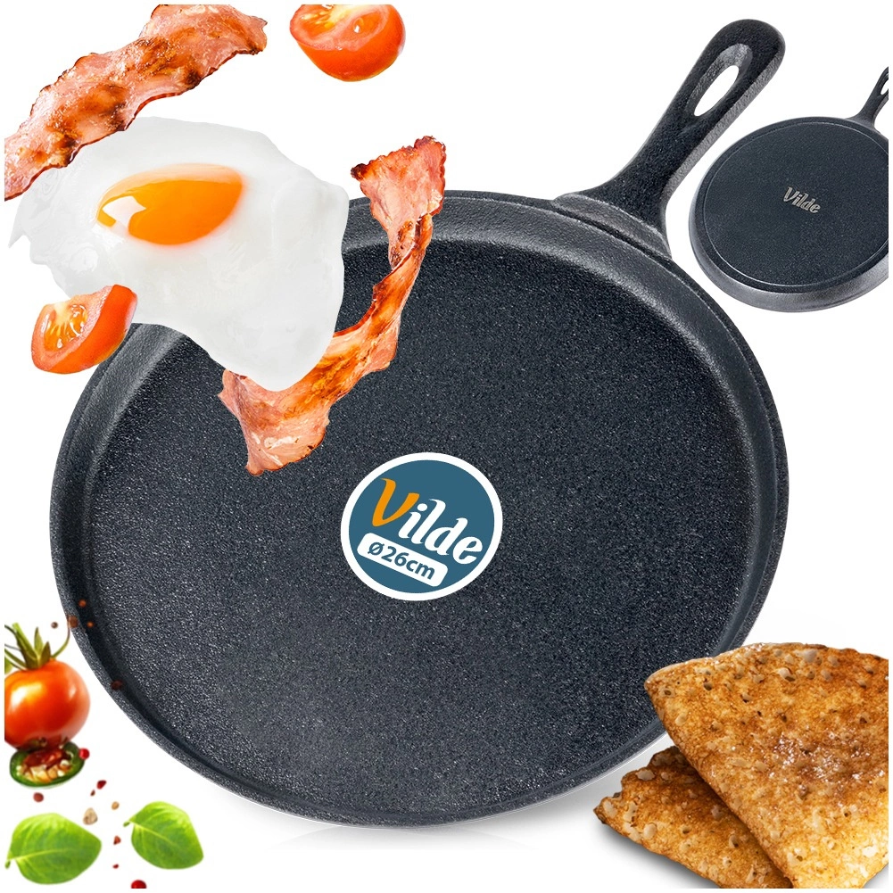 - Utilizare universală: clătite, omlete, turte, pizza, tortilla, ouă ochiuri și rumenire rapidă a cărnii.