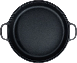 Fonta cu pereți groși distribuie și acumulează uniform căldura, asigurând rezultate de top la prăjire, coacere și înăbușire.