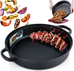 Datorită versatilității, o poți folosi pe gaz, electric, vitroceramică, halogen și inducție, precum și în cuptor, pe grătar sau direct deasupra focului. Două mânere laterale practice facilitează manevrarea la servirea de pe plită pe masă. Excelentă pentru carne, legume, cartofi, preparate gratinate și mâncăruri la oală.