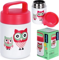 Acest termos compact pentru mâncare este ideal pentru școală, grădiniță, excursii și serviciu. Datorită construcției din inox este rezistent, igienic și ușor de curățat, iar gâtul larg facilitează servirea supelor, terciurilor, pastelor, salatelor și gustărilor cu fructe. Designul colorat cu motiv de bufniță aduce bucurie la fiecare înghițitură.