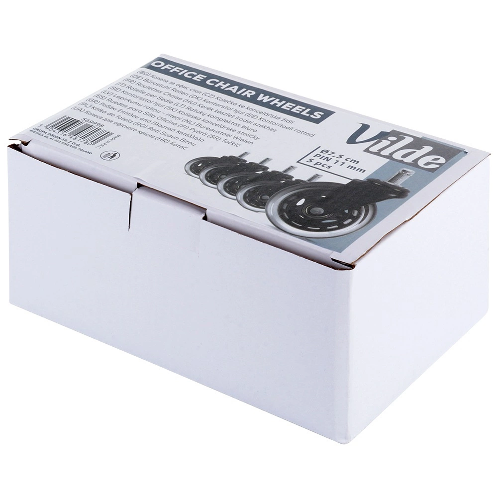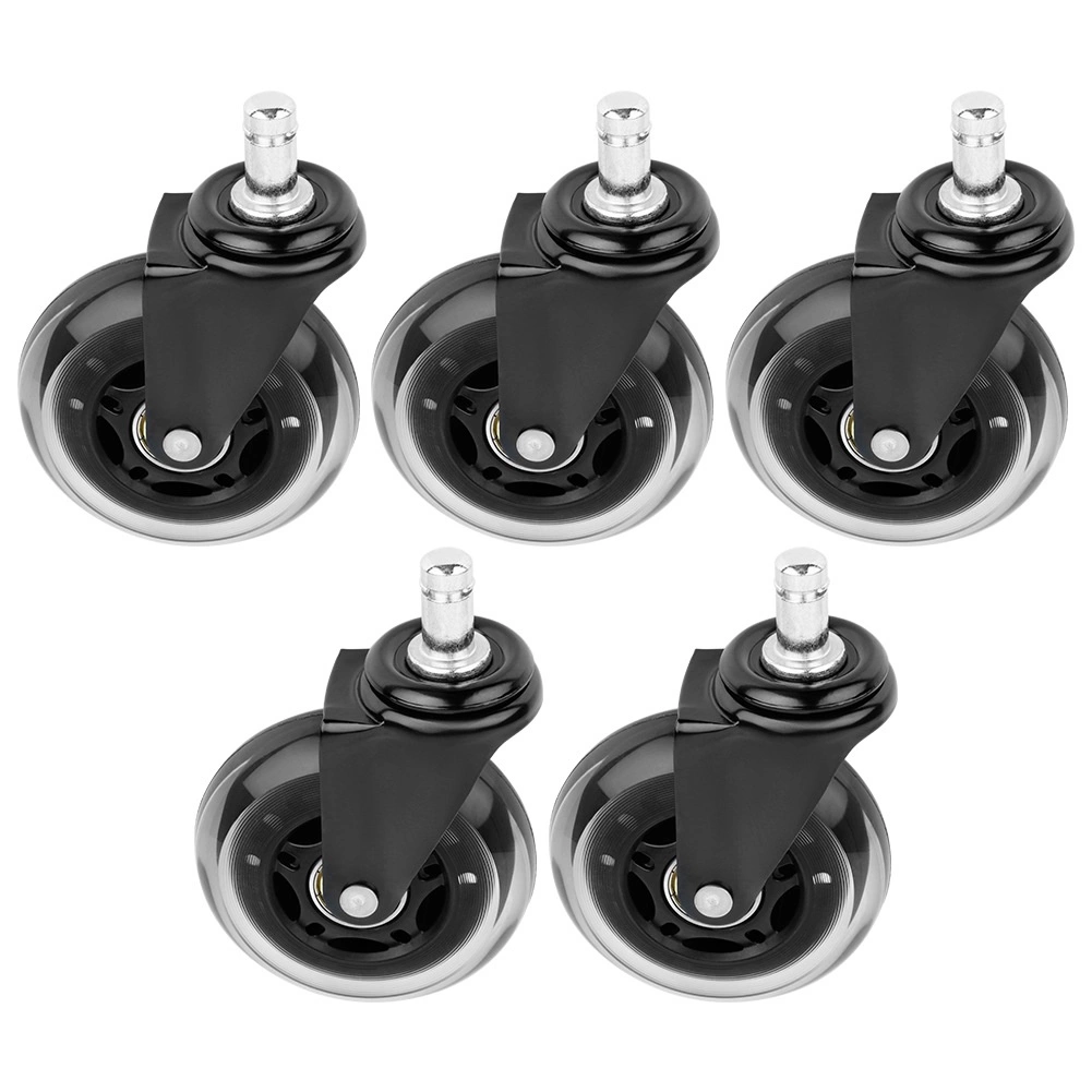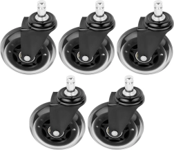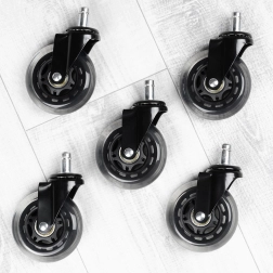 Set practic de cinci roți de schimb pentru scaune de birou, care asigură deplasare silențioasă și lină pe pardoseli dure fără scârțâit deranjant. Suprafața din cauciuc este blândă cu podeaua și, în același timp, rezistentă la uzură, astfel încât roțile rezistă utilizării zilnice la birou și acasă.