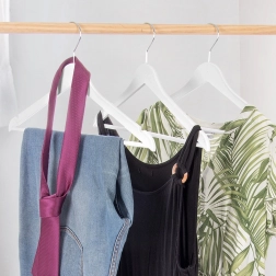 Crestături pentru rochii și topuri, bară transversală pentru pantaloni sau accesorii – un singur umeraș se potrivește mai multor tipuri de îmbrăcăminte.